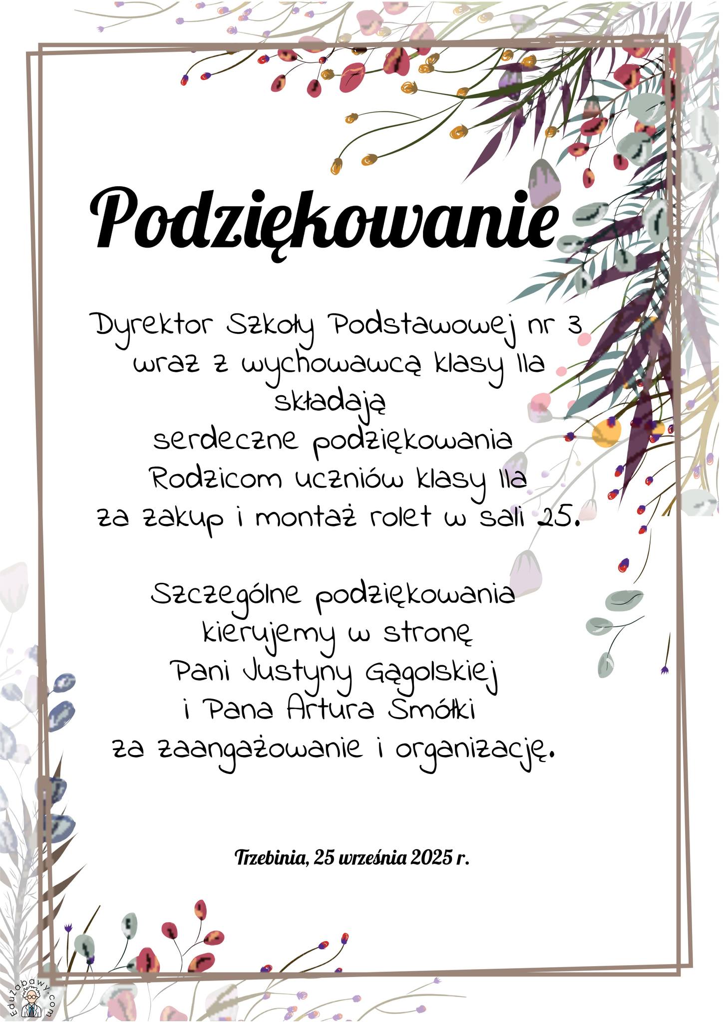 Podziękowanie dla Rodziców uczniów klasy 2a
