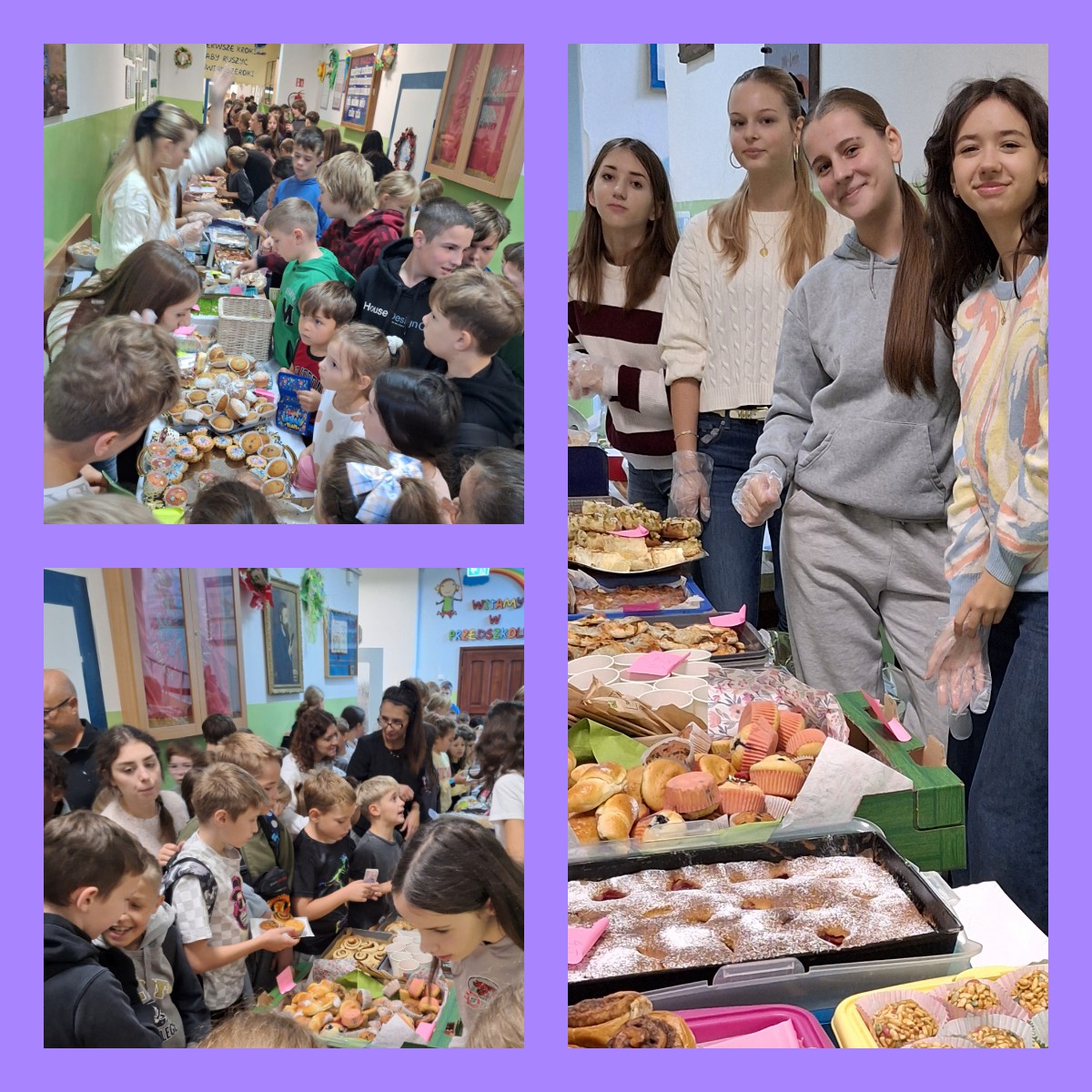 2 października br., w naszej szkole odbył się kiermasz słodkości, który cieszył się ogromnym zainteresowaniem! W tym dniu korytarz szkolny zamienił się w cukiernię, w której wszyscy mogli zakupić oraz spróbować pysznych ciast przygotowanych przez naszych niezawodnych i wspaniałych Rodziców oraz Uczniów. Sprzedaż rozpoczęła się od rana, a pyszności rozeszły się w szybkim tempie.