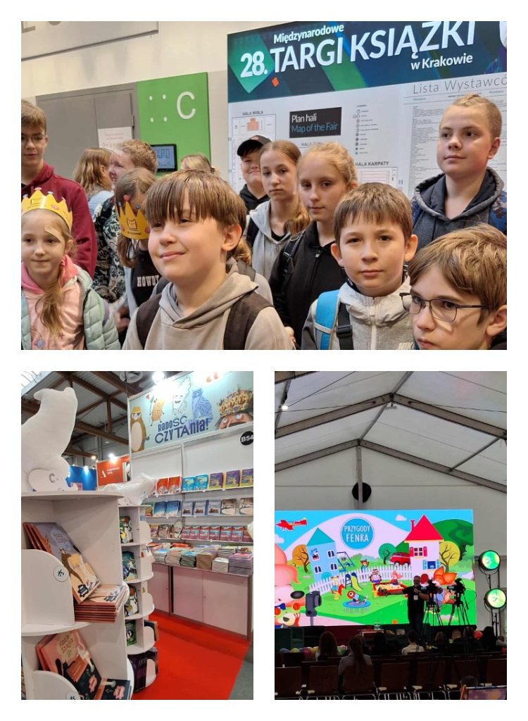 Dzięki środkom z Narodowego Programu Rozwoju Czytelnictwa’ 2025 grupa uczniów z klasy V i VII b, miała okazję poznać nowości książkowe, spotkać autorów książek i otrzymać autograf, a także uczestniczyć w warsztatach tworzenia zakładek do książek techniką origami, zapoznać się z turniejem i ofertą gier planszowych. Nasi uczniowie układali również obraz z kostek Rubika na stoisku Speedcube.