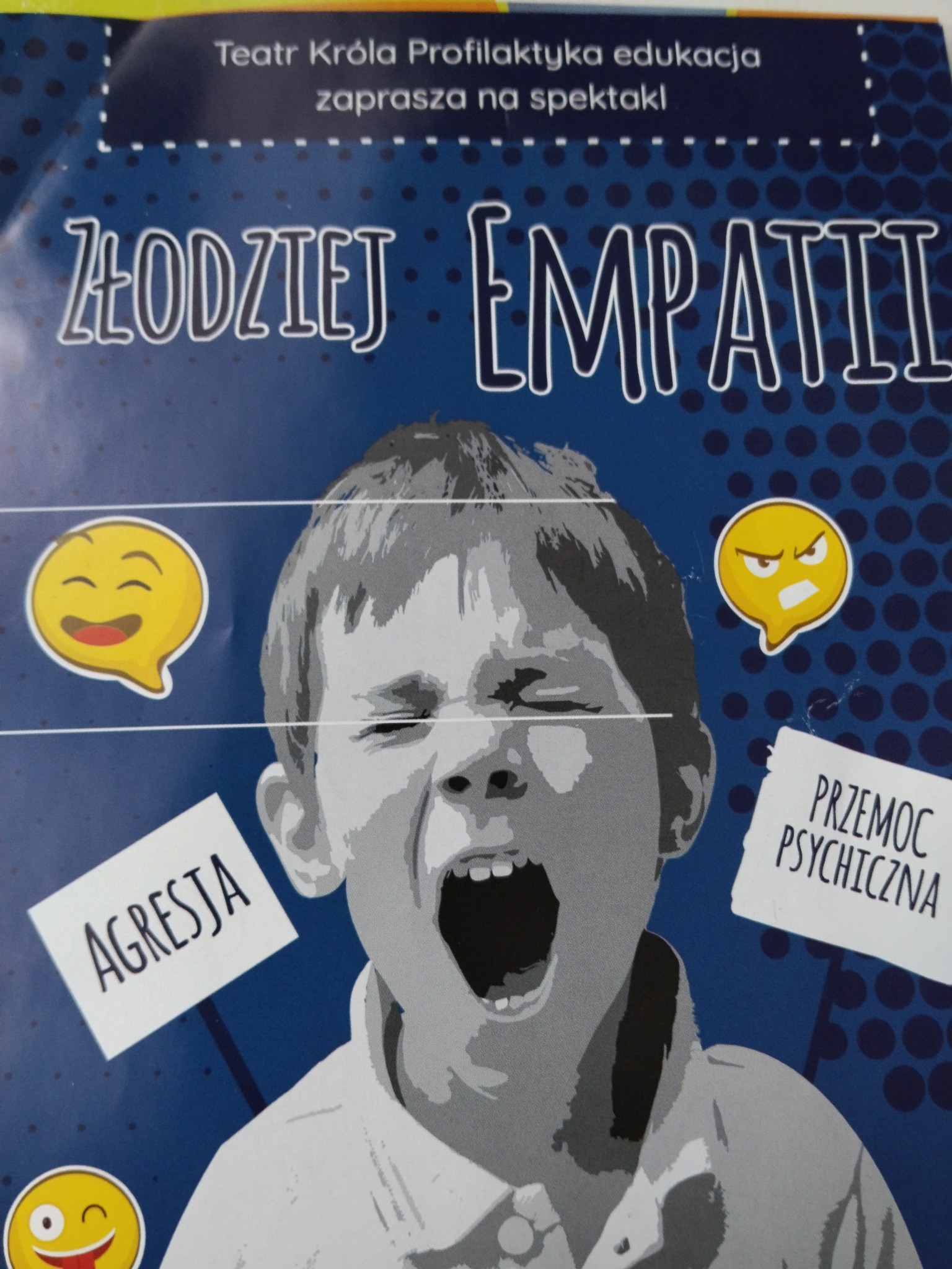 W dniu 28 listopada 2025r. uczniowie klas 6-8 obejrzeli w TCK w Trzebini spektakl profilaktyczny pt. “Złodziej empatii”. Przedstawienie przygotował dla młodych widzów Teatr Króla w Łodzi.