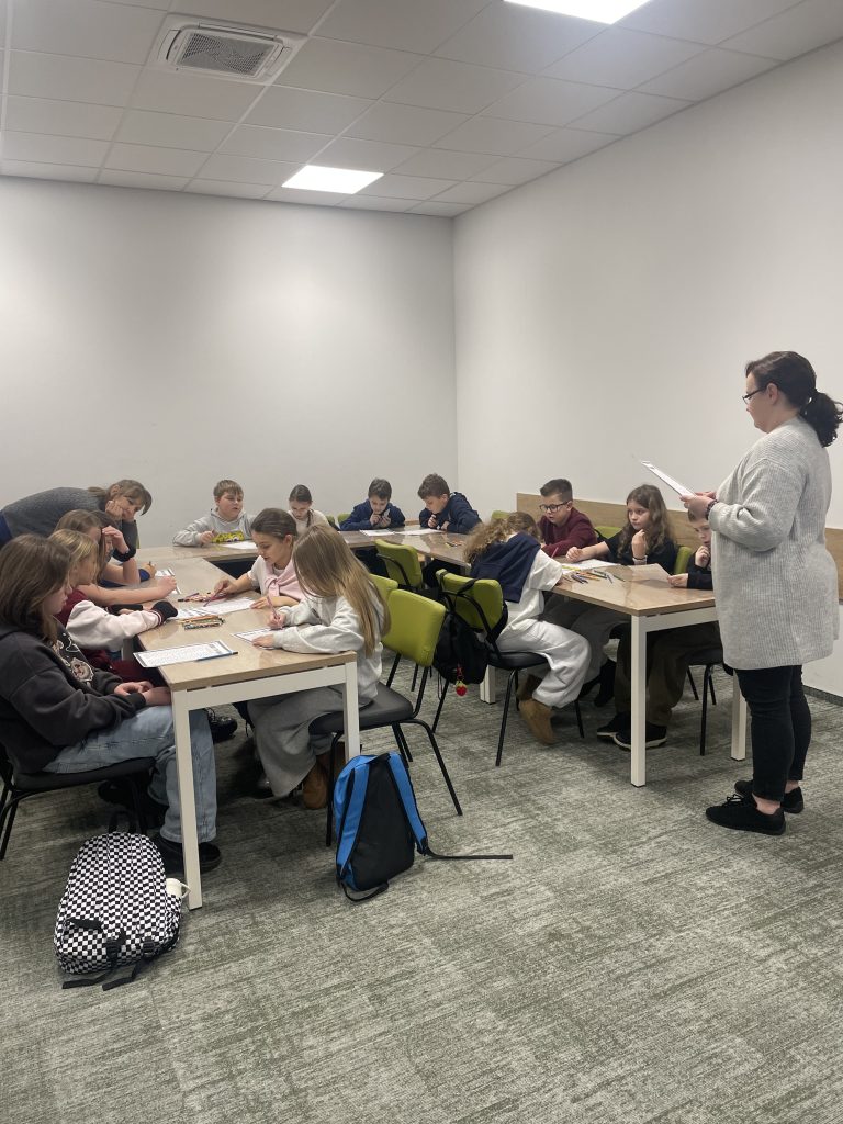 Jeszcze w tym samym dniu na uczniów klasy 4b czekały kolejne atrakcje. Uczestniczyli w kreatywnych zajęciach bibliotecznych na terenie trzebińskiej Manufaktury, gdzie mieli możliwość stworzenia oryginalnych, autorskich niebanalnych zakładek do książek.
