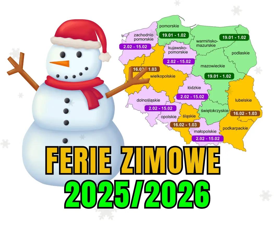 Ferie zimowe w województwie małopolskim w 2026 roku odbędą się w terminie od 2 do 15 lutego 2026 r.. To czas na białe szaleństwo, odpoczynek od szkoły i regenerację sił. Życzymy udanych, pełnych radości, zdrowych i bezpiecznych ferii, wspaniałych zimowych przygód oraz powrotu do szkół z nową energią!