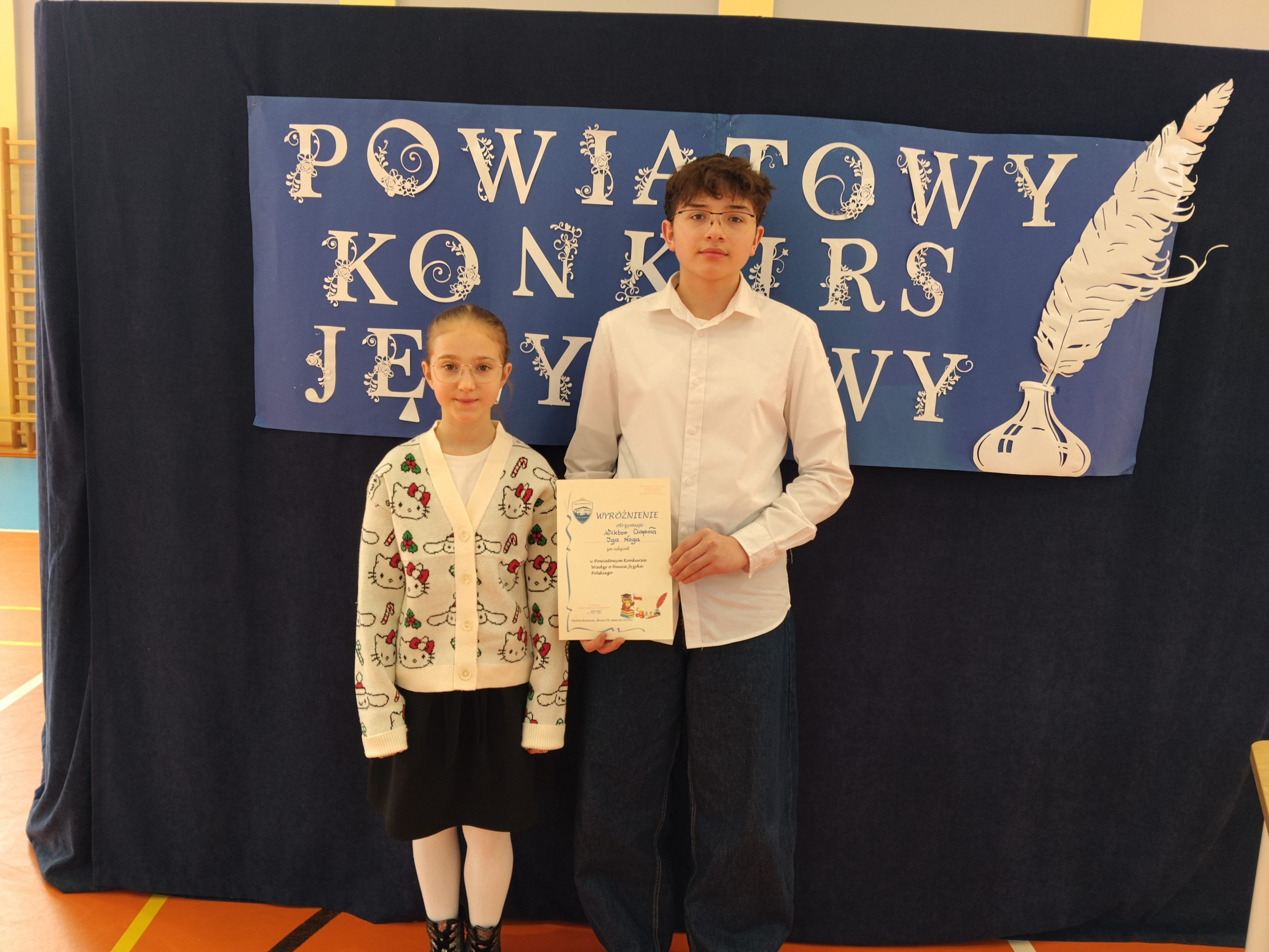 Drużyna w składzie Wiktor Ciapała z klasy 8b i Iga Noga z klasy 5 otrzymała wyróżnienie.