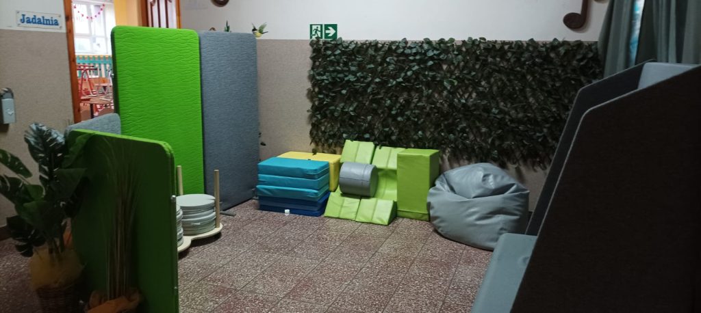 Kolejny etap projektu „Edukacja włączająca w gminie Trzebinia” zakończony. Przy salach, w których będą odbywać się zajęcia w ramach projektu powstał kącik wyciszenia i relaksu.