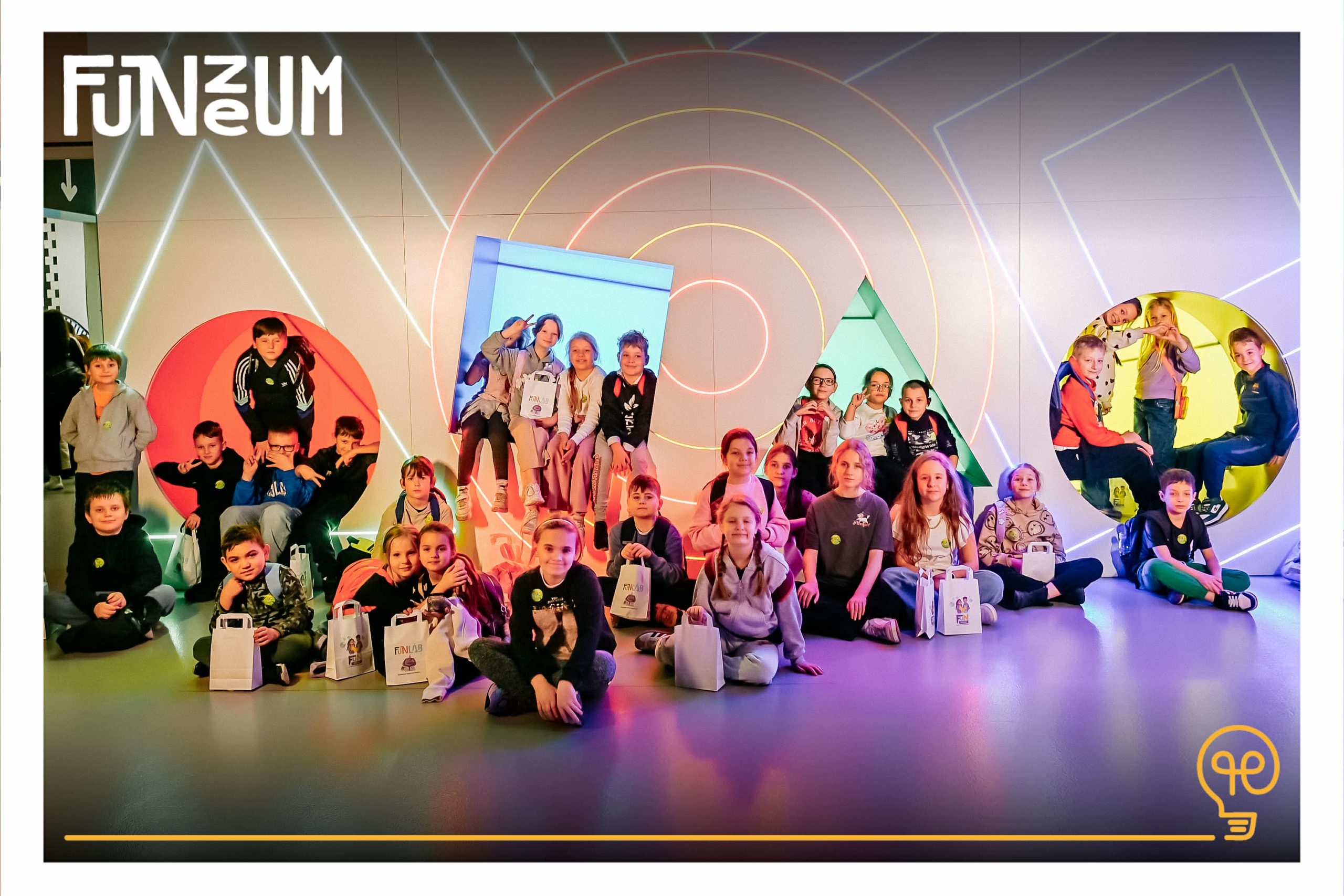 Kolejny etap wycieczki to zwiedzanie Funzeum oraz zdobywanie kolejnych poziomów odkrywców. Uczniowie mieli okazję zobaczyć niezwykłe instalacje świetlne, poznać różne barwy oraz dowiedzieć się, jak powstają kolory. Dzieci z dużym zainteresowaniem zwiedzały kolejne sale, eksperymentowały i robiły pamiątkowe zdjęcia. Była to nie tylko świetna zabawa, ale także nauka poprzez doświadczenie. Każdy z uczniów samodzielnie zbierał punkty i otrzymał specjalne dyplomy i medale.