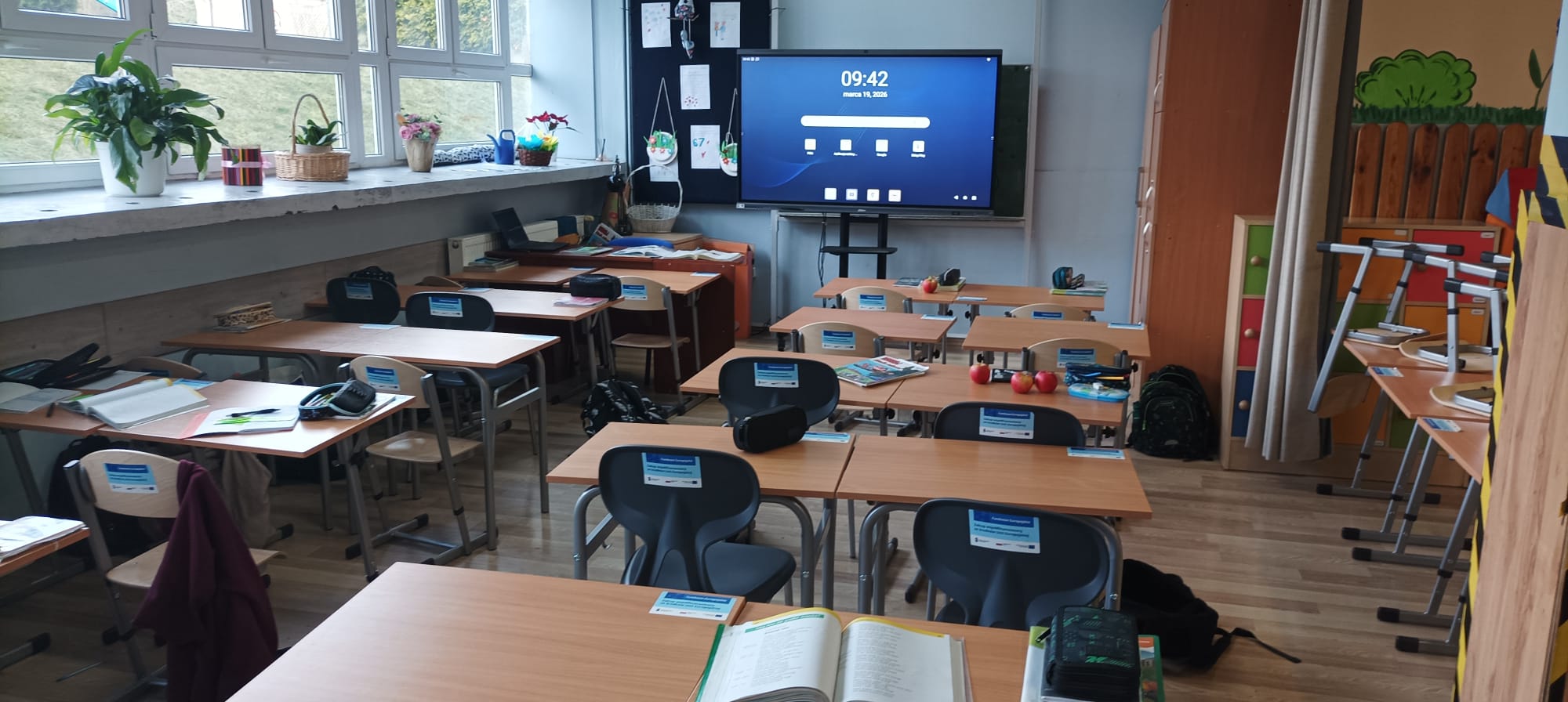 W sali dla klasy 4a i świetlicy, dzięki projektowi zakupiliśmy 25 nowych stolików i krzeseł z regulacją, monitor, tablicę, projektor z tzw. „Magicznym dywanem”. Dodatkowo zamontowano nowe szafki.